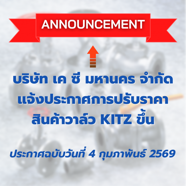 บริษัท เค ซี มหานคร จำกัด แจ้งประกาศการปรับราคาสินค้าวาล์ว KITZ ขึ้น